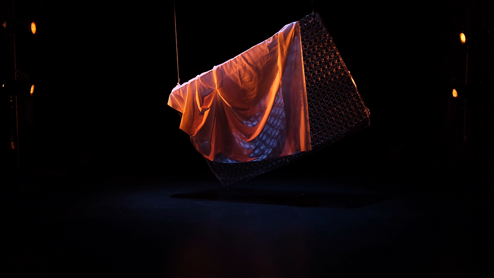 Cette conception est constituée d’un matelas comme dispositif scénique, avec des modulations créées à l’aide d’éclairages et d’environnements sonores. Il s’agit d’une expérience multisensorielle.